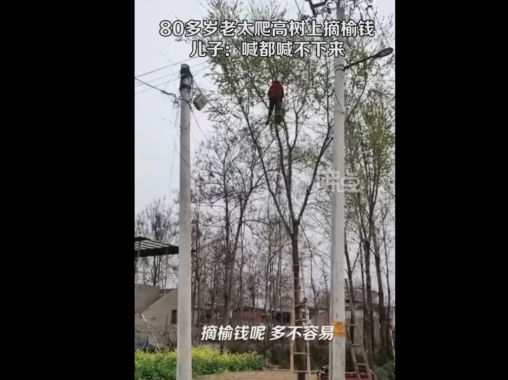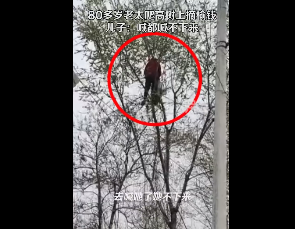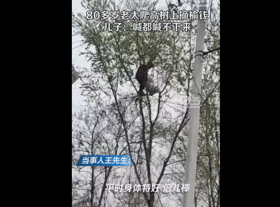 (原标题:男子晒80多岁老娘爬高树摘榆钱:喊都喊不下来 从上午摘到下午)